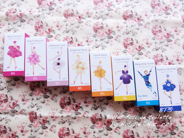 系列包括愉悅小依蘭、憂鬱藍海洋(男士香水)、永恆紫羅蘭、浪漫鮮桃花、